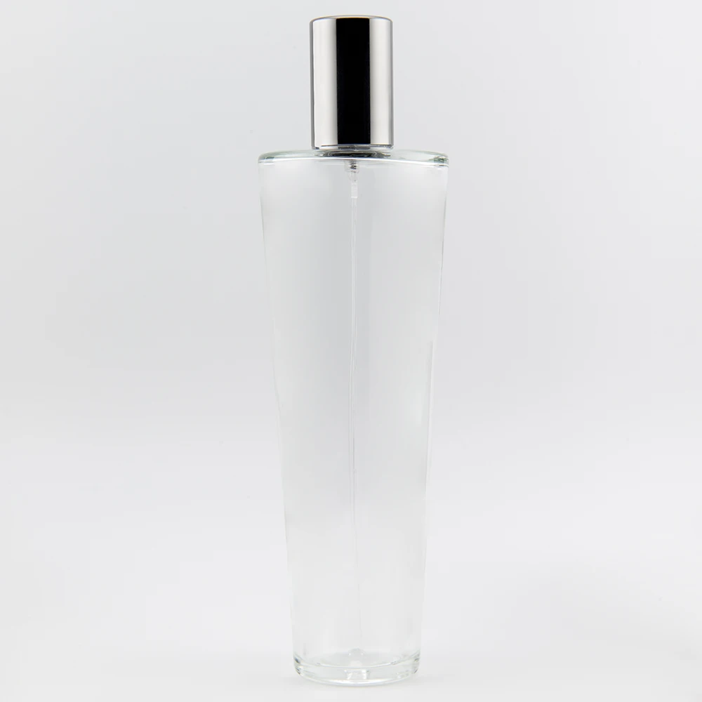 100ml Clear OMEGA Crimp 15FEA bright silver Push-on atomiser and dark grey cap