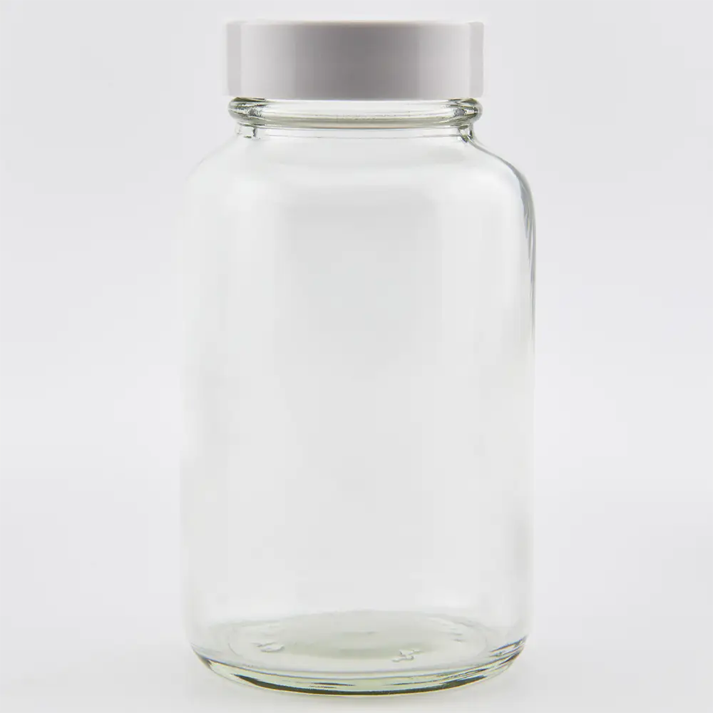 4oz 118ml Clear Glass Powder Jar and R3/38 White Urea PVDC lined cap