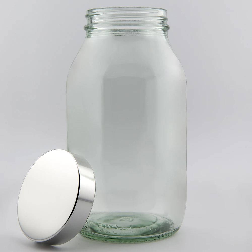 500ml Clear Glass Powder Jar and R3/58 Bright silver PVDC lined with Aluminium Sheath