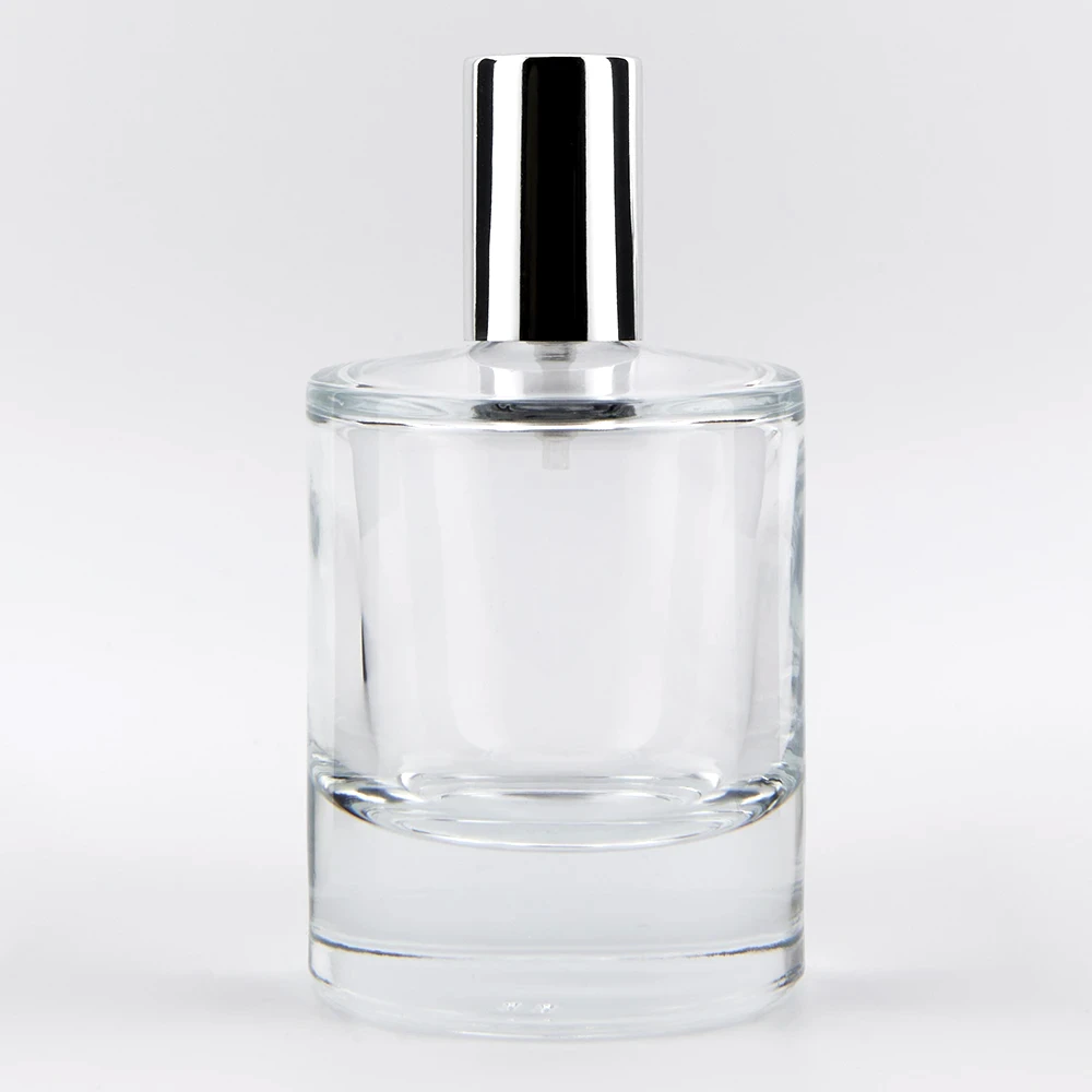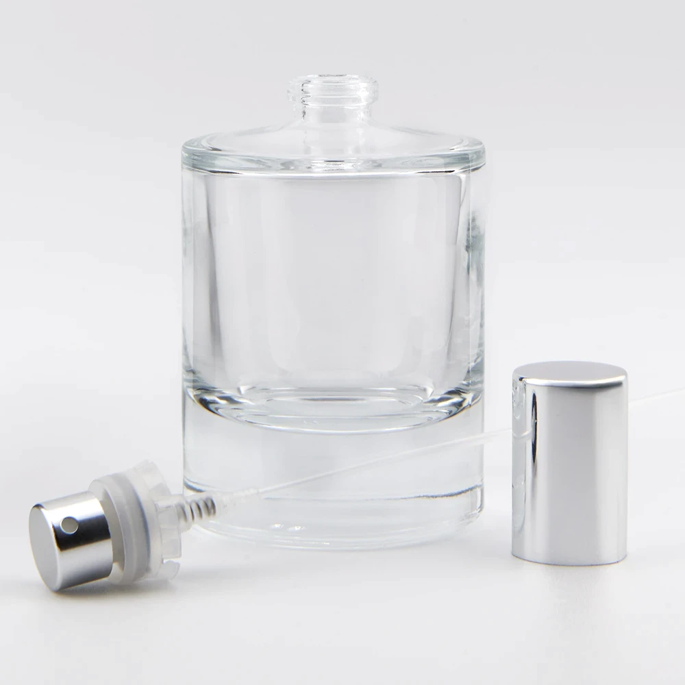 50ml SARA Fragrance Bottle with Bright Silver Push On Atomiser and Bright Silver Aluminium Tri-Cap
